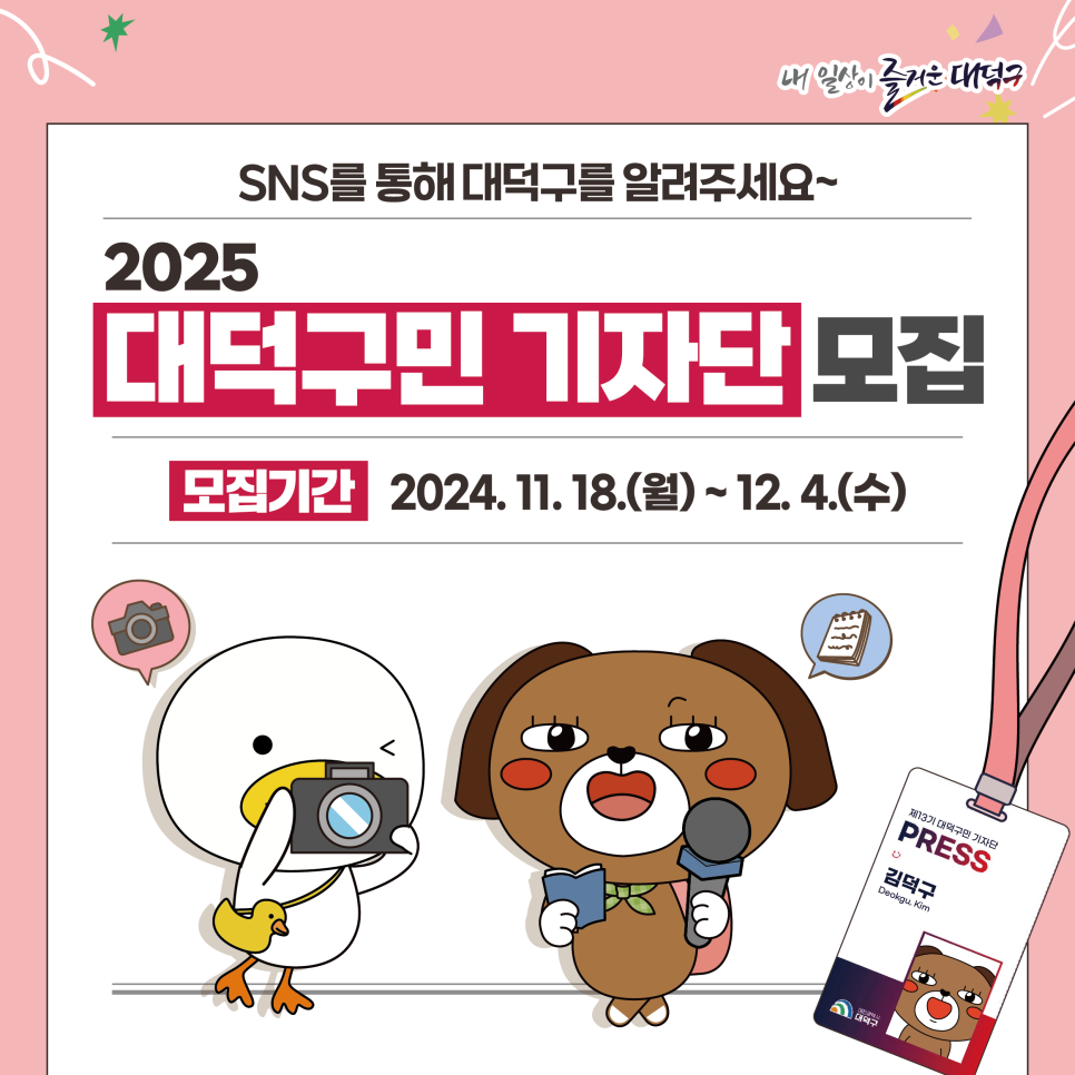 2025년 대덕구민 기자단을 모집합니다!