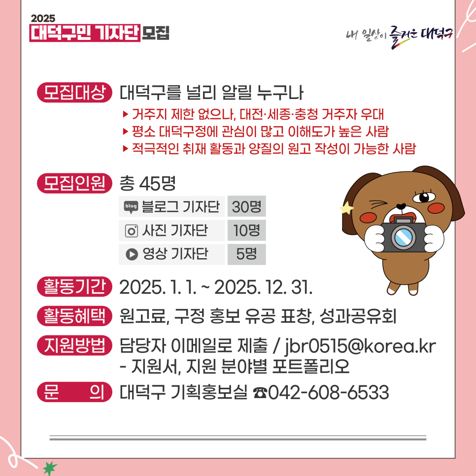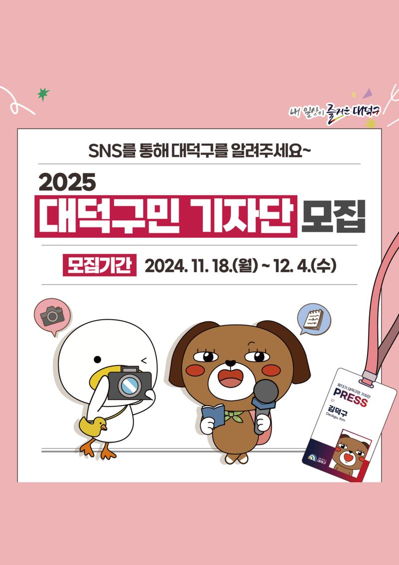 ○ 공고명 : 2025년 대덕구민 기자단 모집