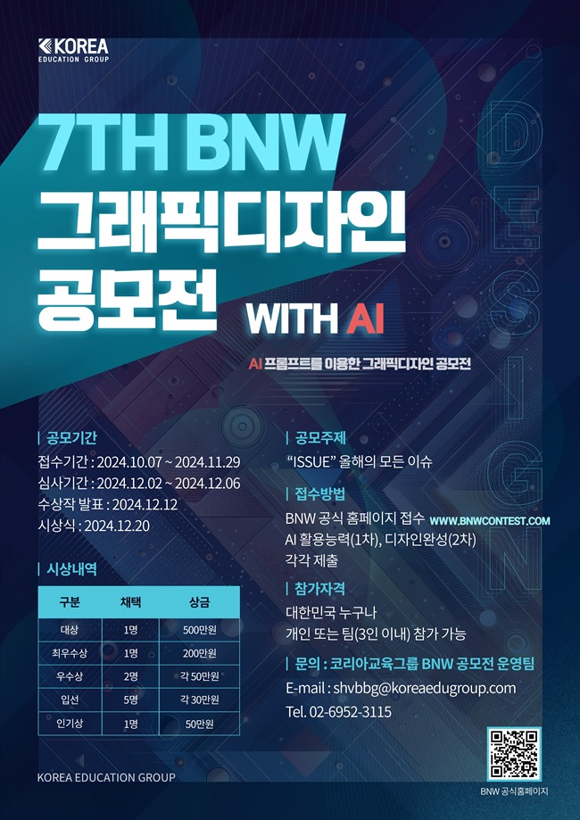 - 코리아교육그룹 디자인 공모전 사무국 02-6952-3115 (평일 09:00~18:00)