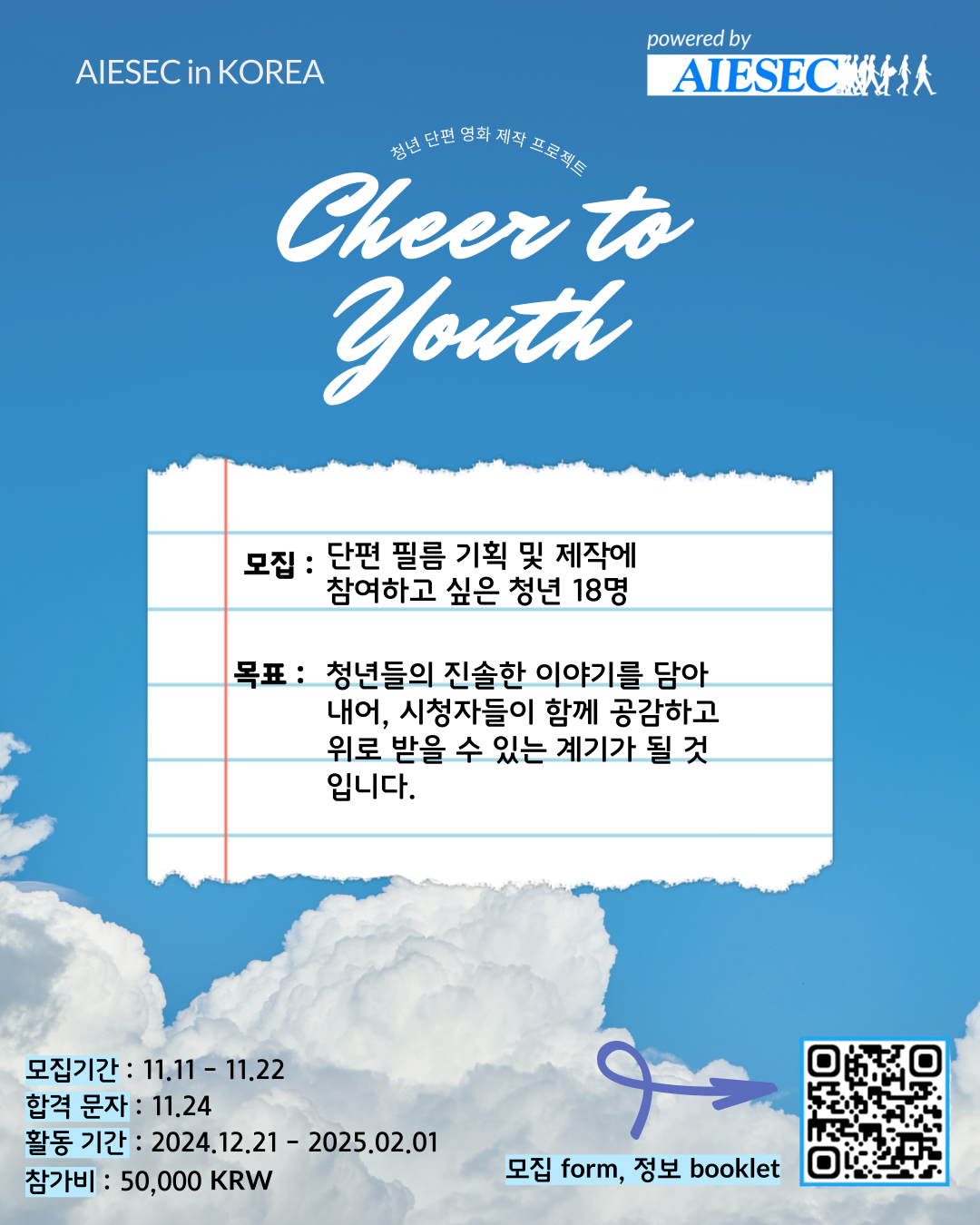 이번 겨울, AIESEC in KOREA 에서 청년들을 위한 영상 제작 프로그램을 진행합니다!