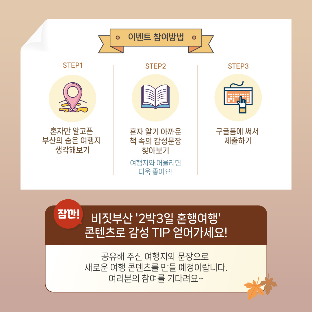 ※제출하신 여행지 및 문구는 비짓부산 콘텐츠에 활용될 수 있습니다.