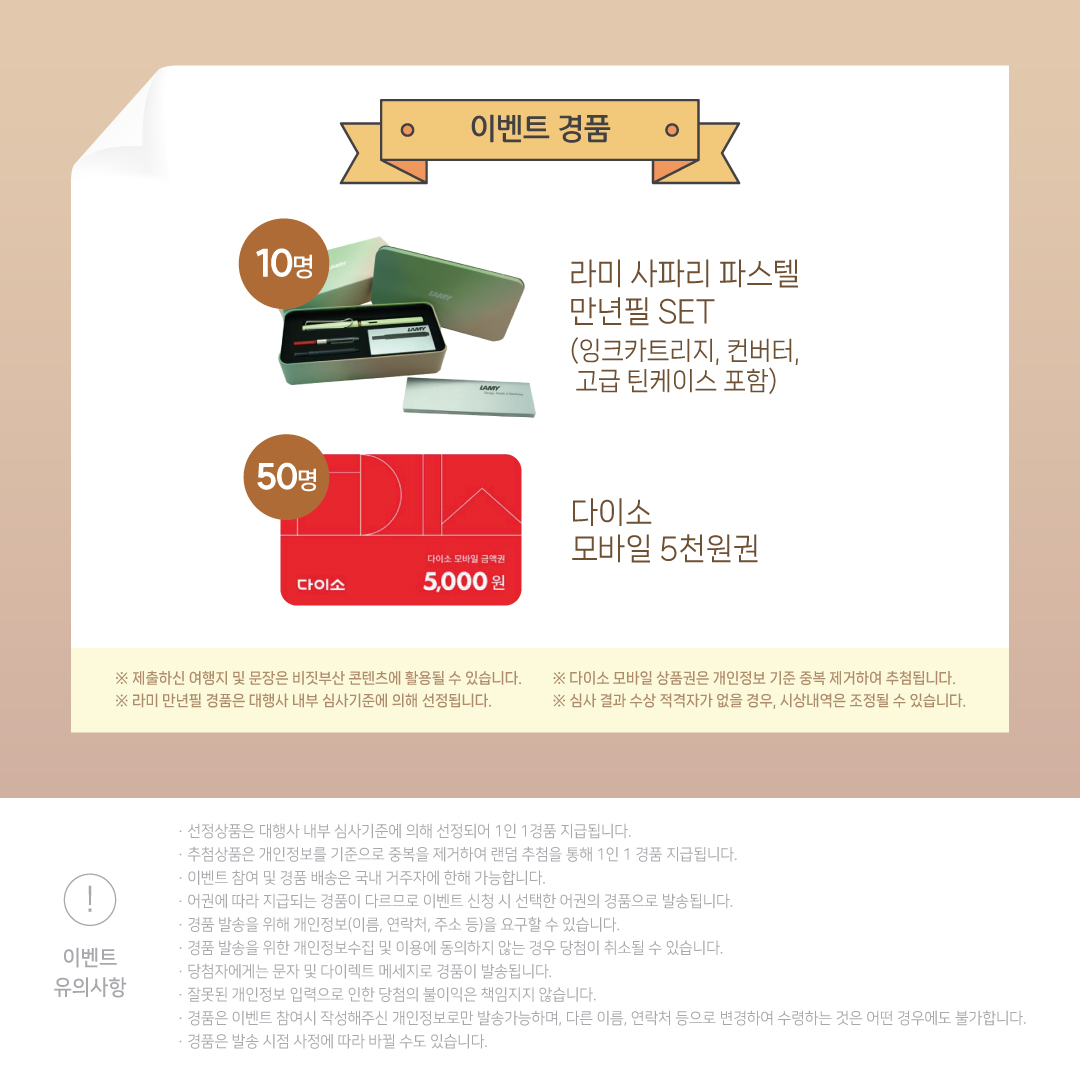 ※라미 만년필 경품은 대행사 내부 심사기준에 의해 선정됩니다.