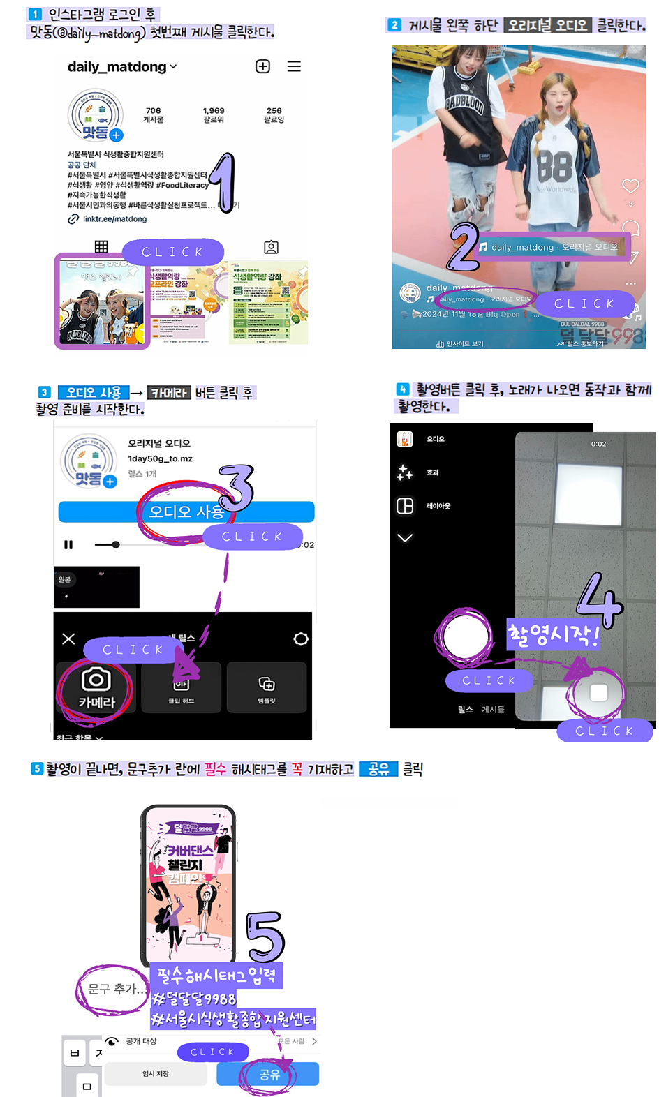※ 업로드 방법: 인스타그램 릴스 오리지널 오디오사용 → 커버댄스 촬영 후