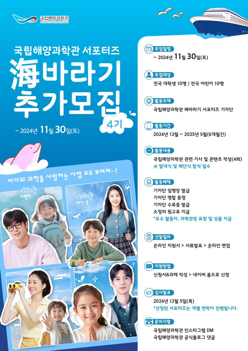 국립해양과학관 해바라기 서포터즈 4기 추가 모집(~11.30)
