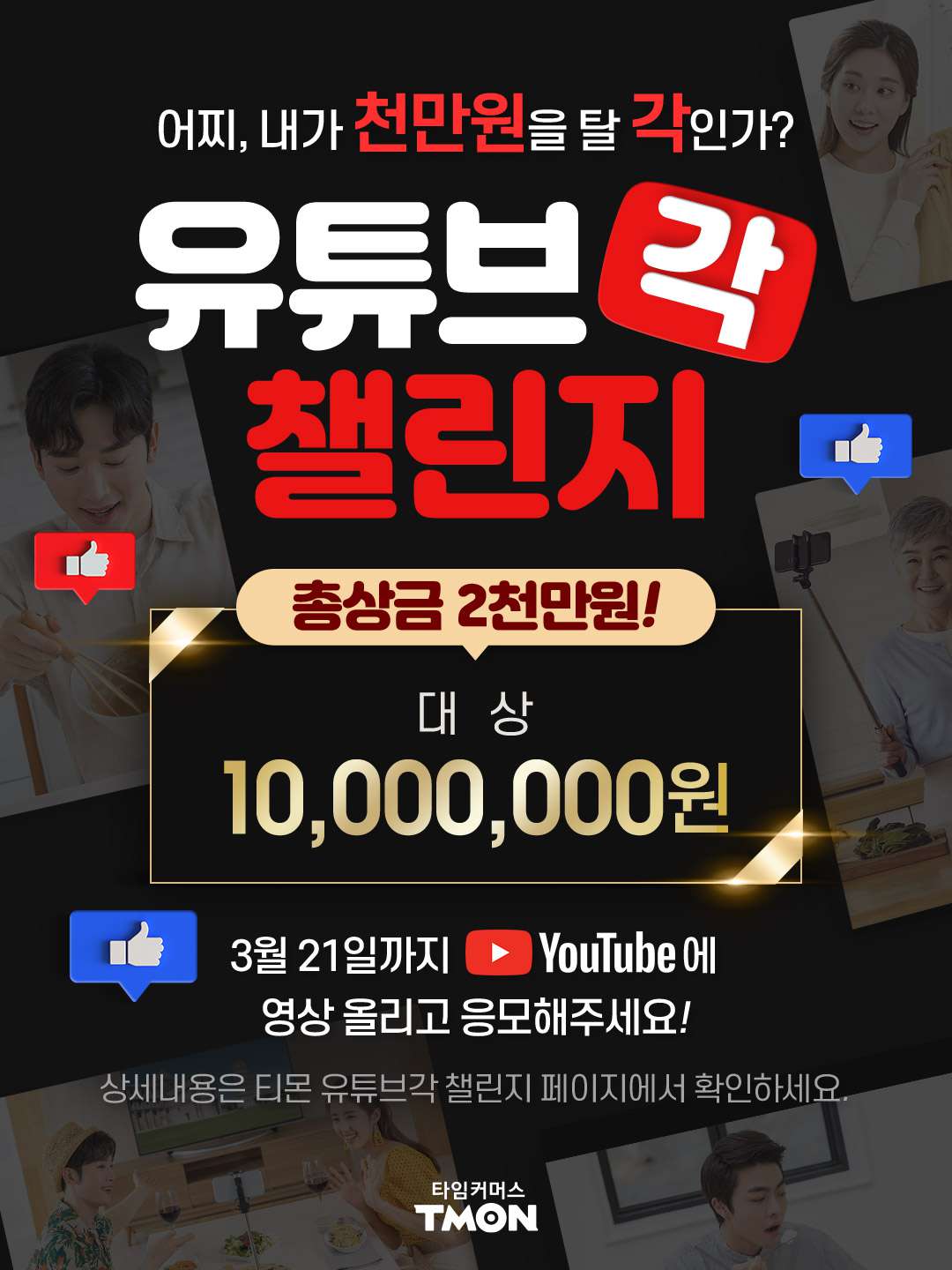 자세히 보기: http://benefit.tmon.co.kr/promotions/page/2021youtubechallenge