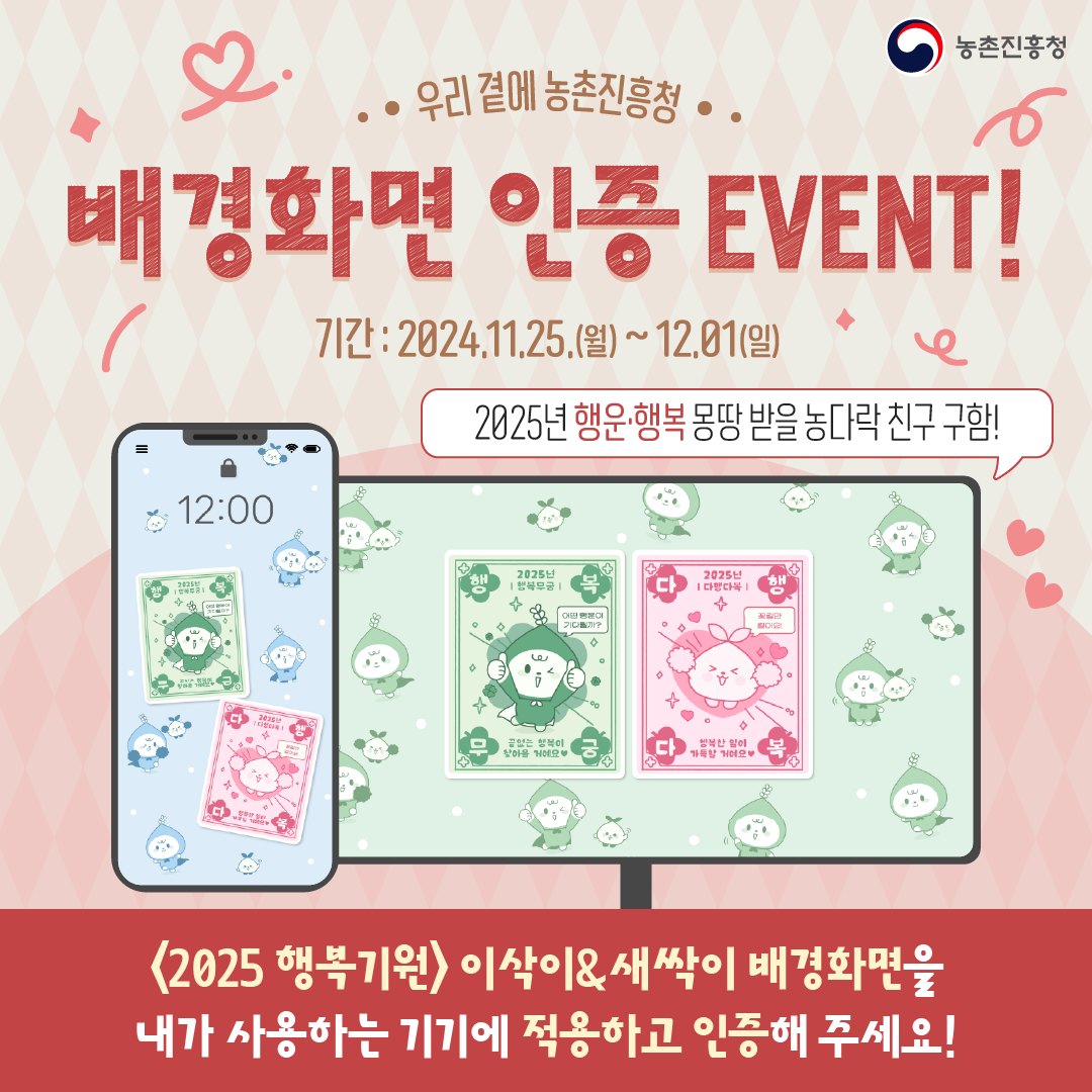 농촌진흥청과 올 한해를 함께한 농다락 친구들에게 다가올 2025년의 행운과 행복을 '미리 선물'합니다❤️