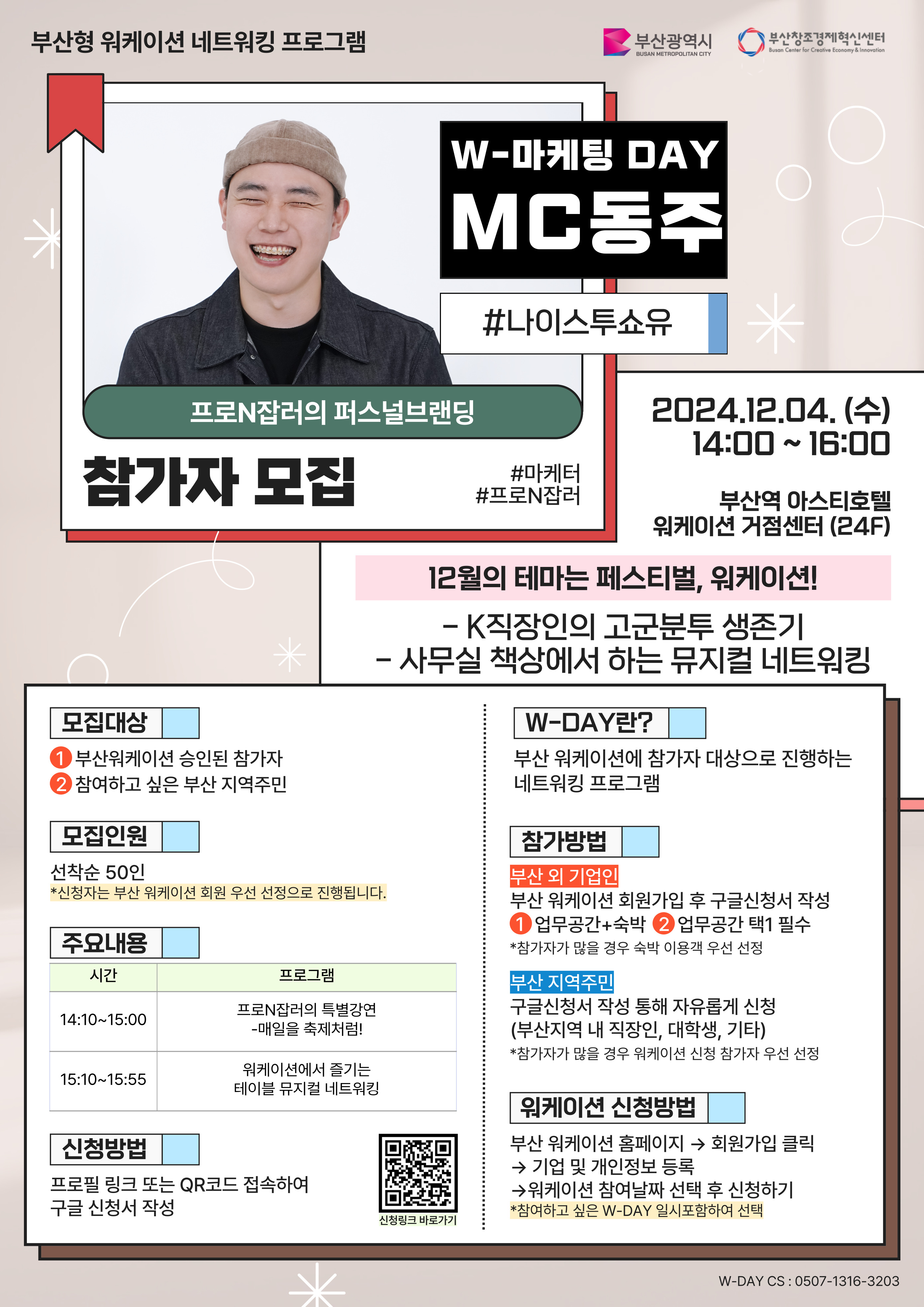 부산 워케이션 참가자뿐 아니라, 부산 지역 주민 여러분도 함께하실 수 있으니 많은 관심과 참여 부탁드립니다! 😊