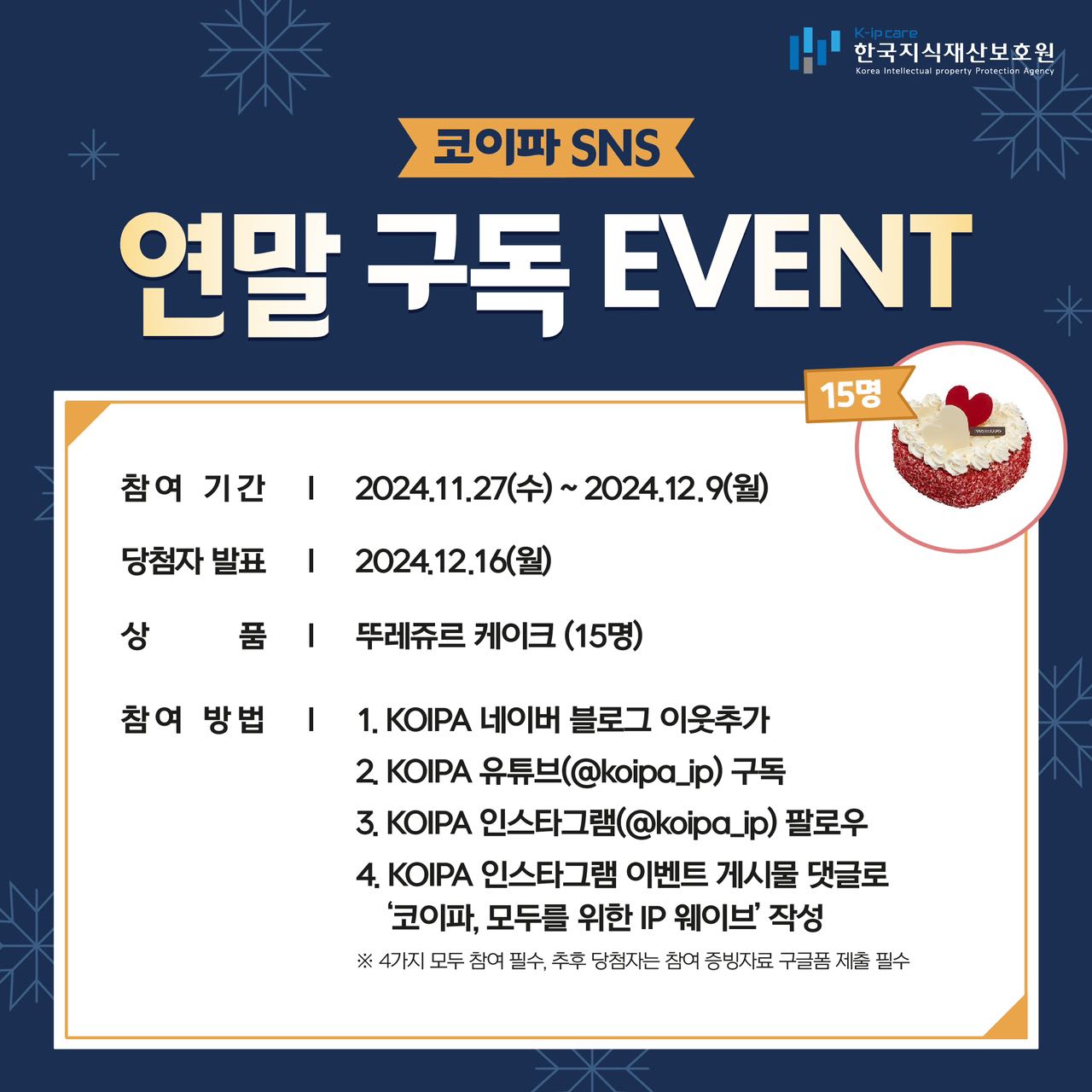 ๐๋น์ฒจ์ ๋ฐํ : 12์ 16์ผ(์) (๋น์ฒจ์ ๊ณต์ง ๋ฐ ๊ฐ๋ณDM ์๋ด)