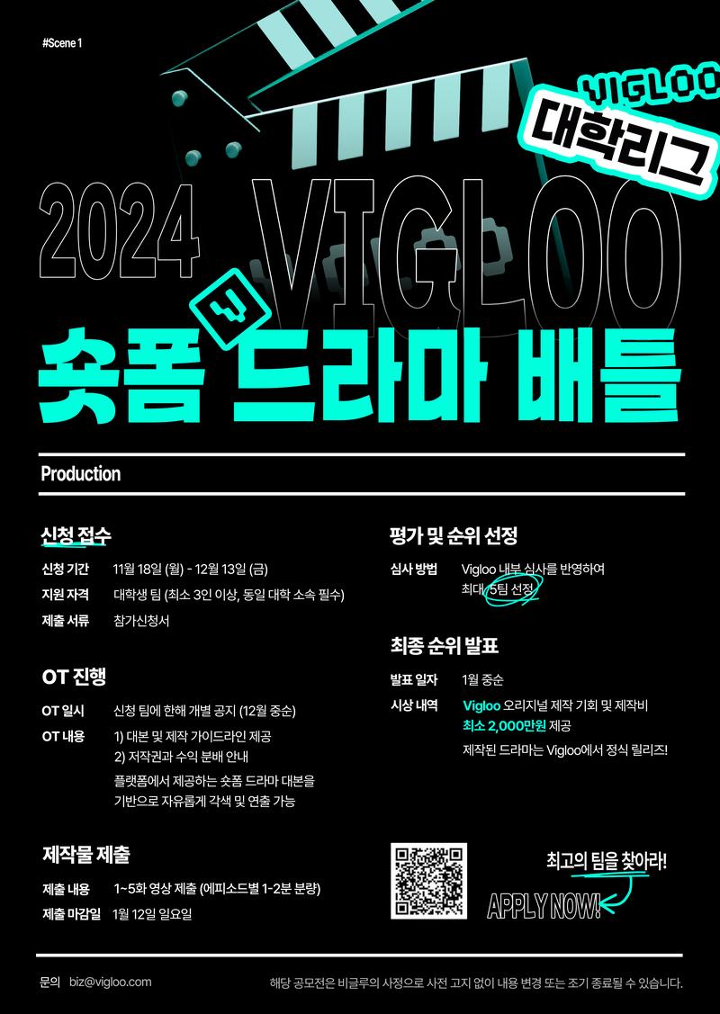 📣 2024 VIGLOO에서 주최하는 [숏폼 드라마 배틀 : 대학리그] 공모전