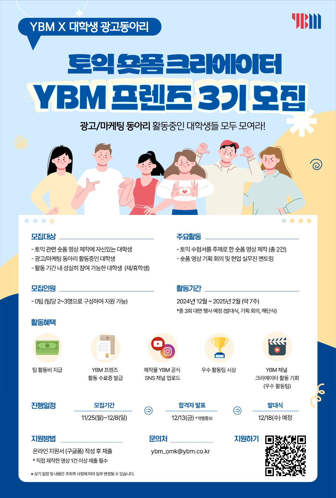 대학생 숏폼 크리에이터 YBM프렌즈 3기 모집