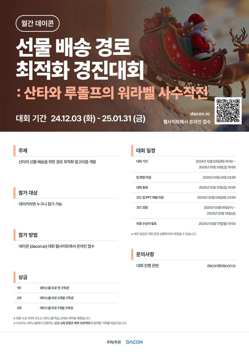 대회 1등부터 3등까지는 수상 인증서(Certification) 발급과 데이스쿨 Pro 구독권