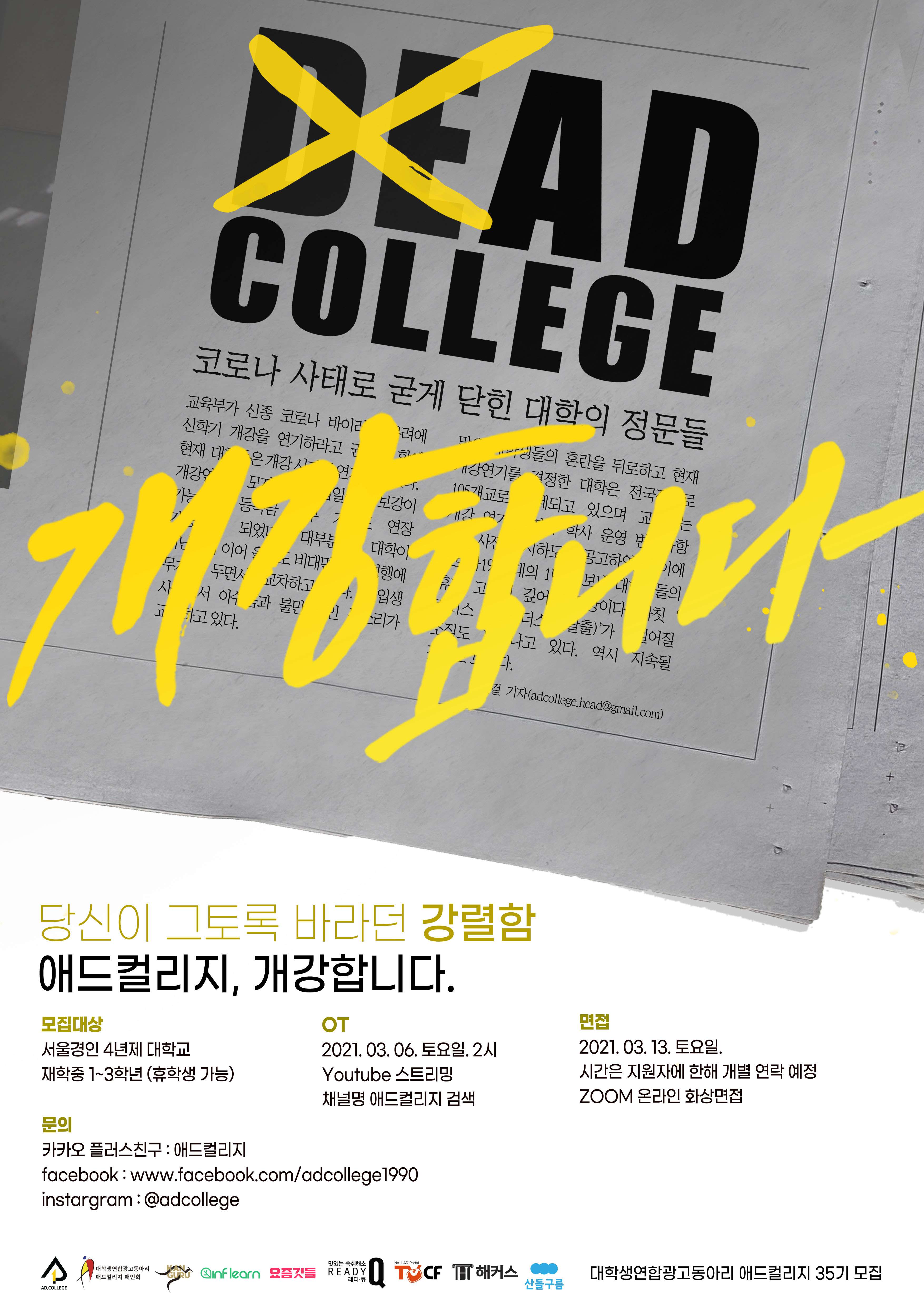 개-강한 광고 대학, 애드컬리지가 "35번째 개강"을 맞이하여 신입생을 모집합니다.