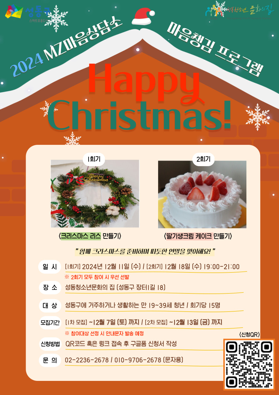 크리스마스 리스와 케이크를 만들면서 다가올 크리스마스를 기대하고, 함께 한 해를 마무리해보아요! 🎅