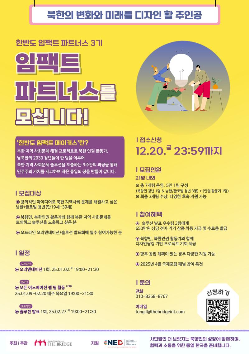 더 브릿지와 NED(전미민주주의기금)가 함께하는 북한 지역 사회문제 해결 프로젝트입니다.