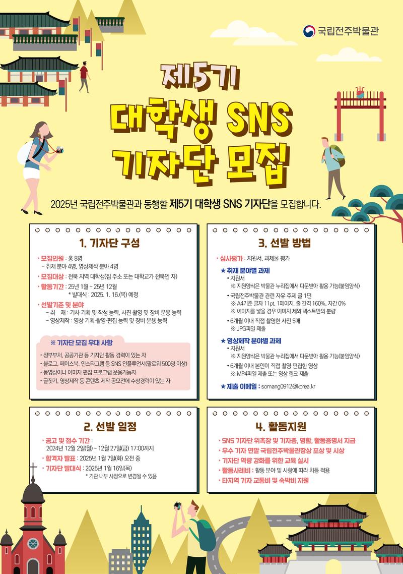 2025년 국립전주박물관과 동행할 제5기 대학생 SNS 기자단을 모집합니다.