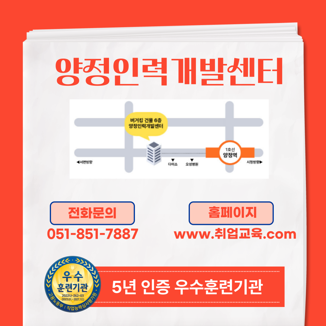 교육장소: 양정인력개발센터 (부산 우수훈련기관)