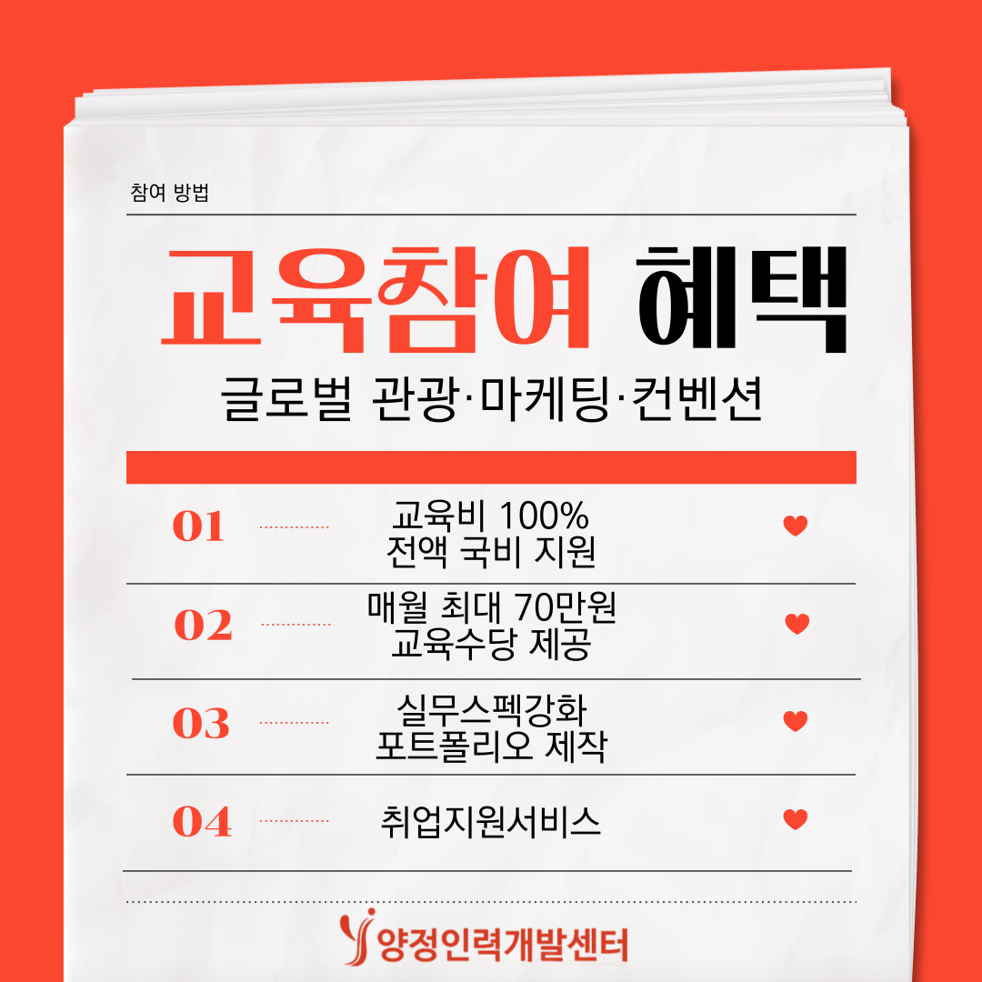 전액 무료로 훈련수당까지 받으며 배우는 절호의 기회!