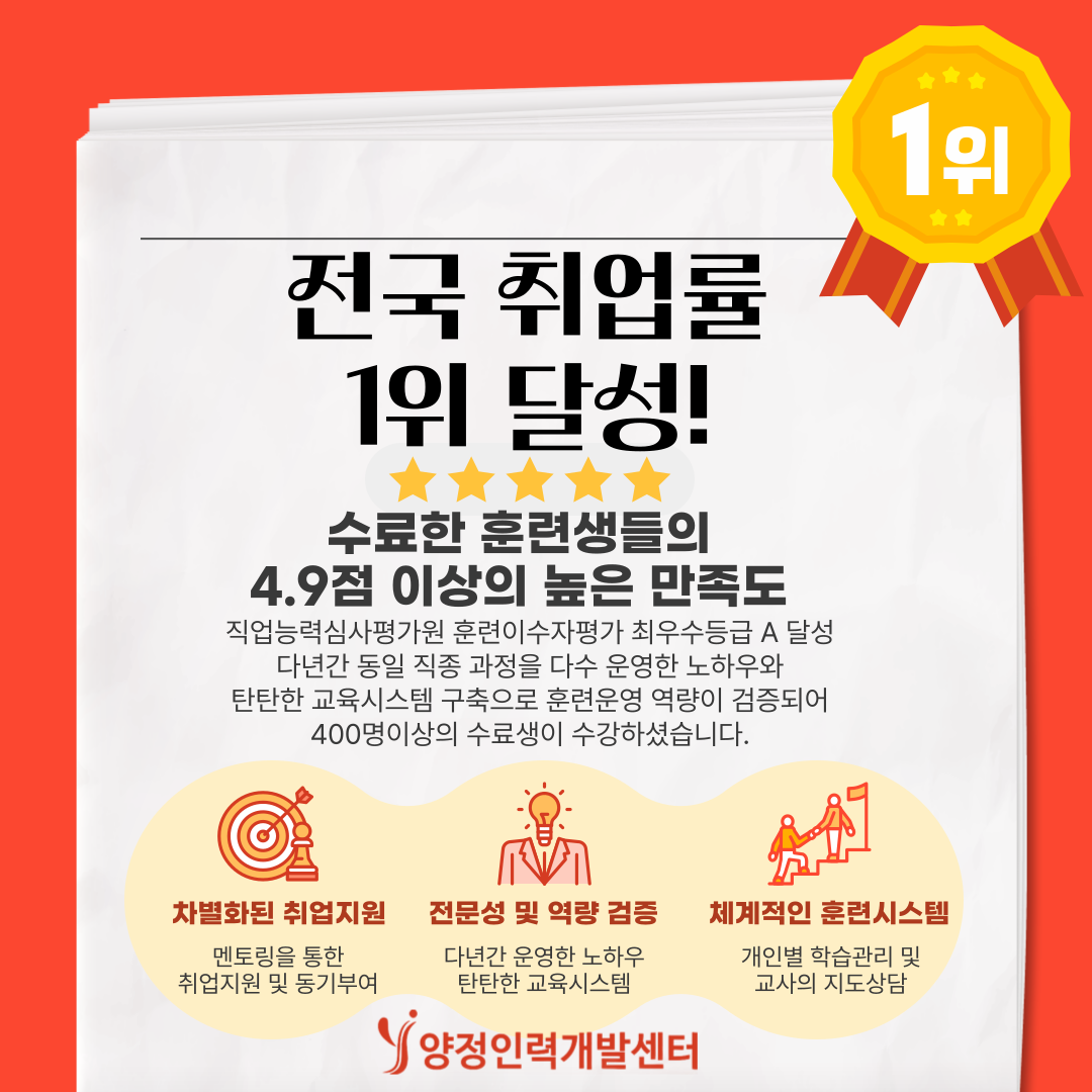 💜 매월 최대 700,000원 훈련장려금 제공! 💜 취업률 높은 과정으로 미래를 설계하세요!