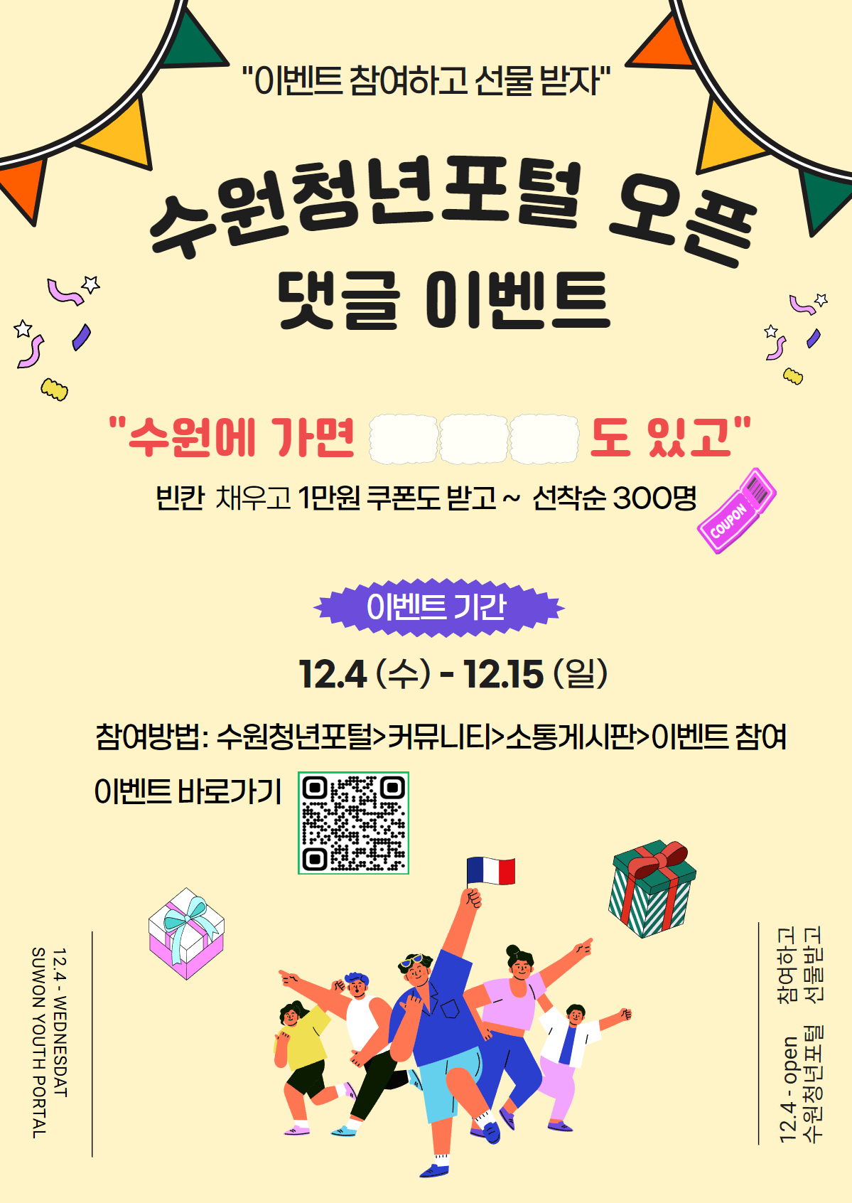 수원의 청년 정책 및 정보를 한눈에 볼 수 있는 ‘수원청년포털’이 12월 4일(수) 오픈 했습니다.