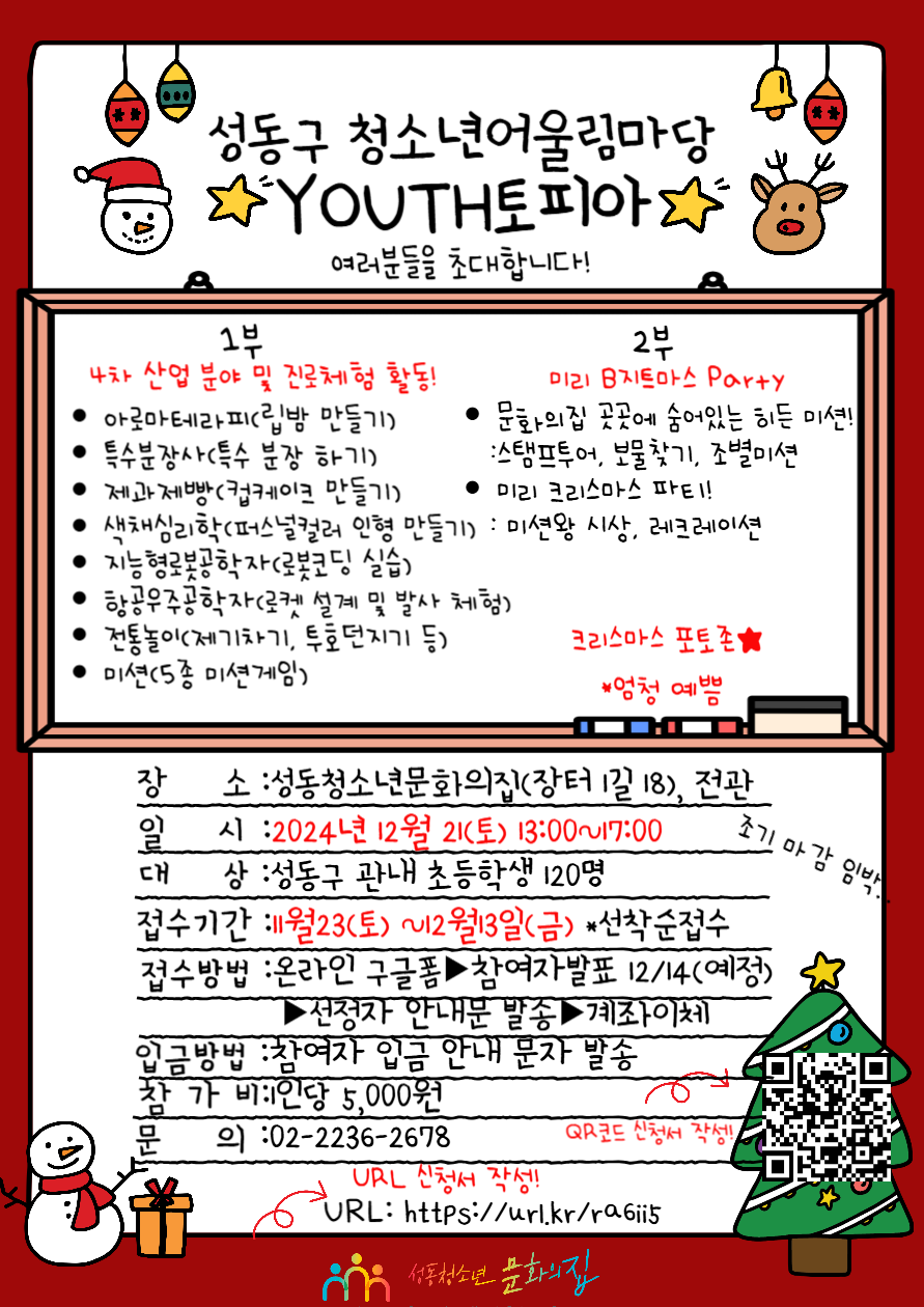 ○ 문의 : 02-2236-2678 성동청소년문화의집 박지현