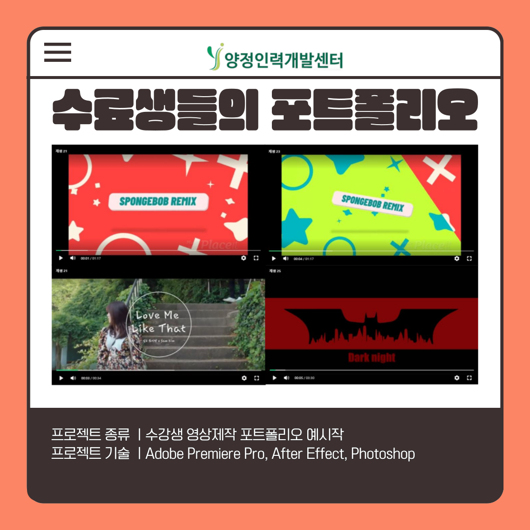 ✔ 영상편집: 프리미어 프로와 애프터 이펙트를 활용한 영상 제작