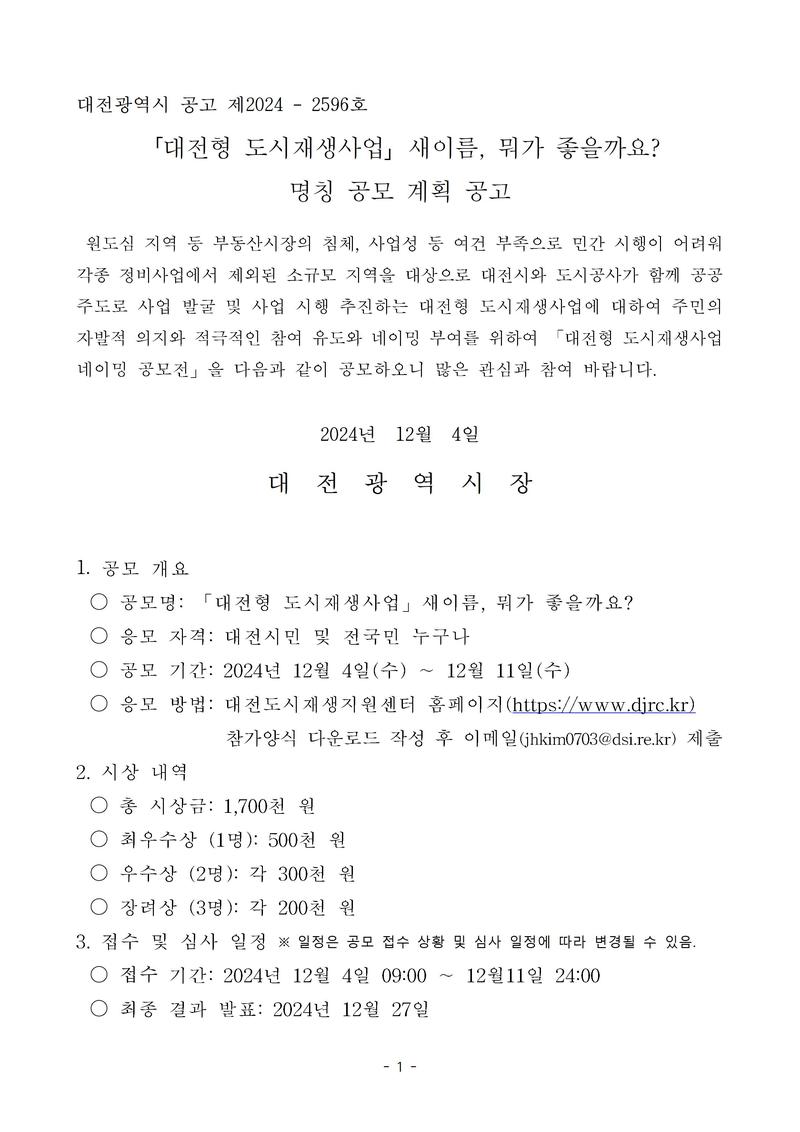 대전광역시 공고 제2024 - 2596호