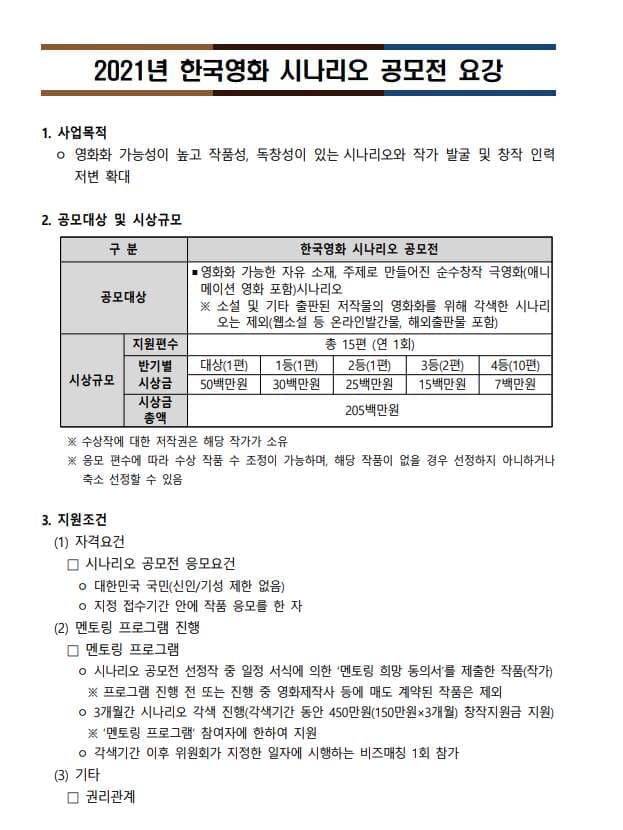 2021년 한국영화 시나리오 공모전