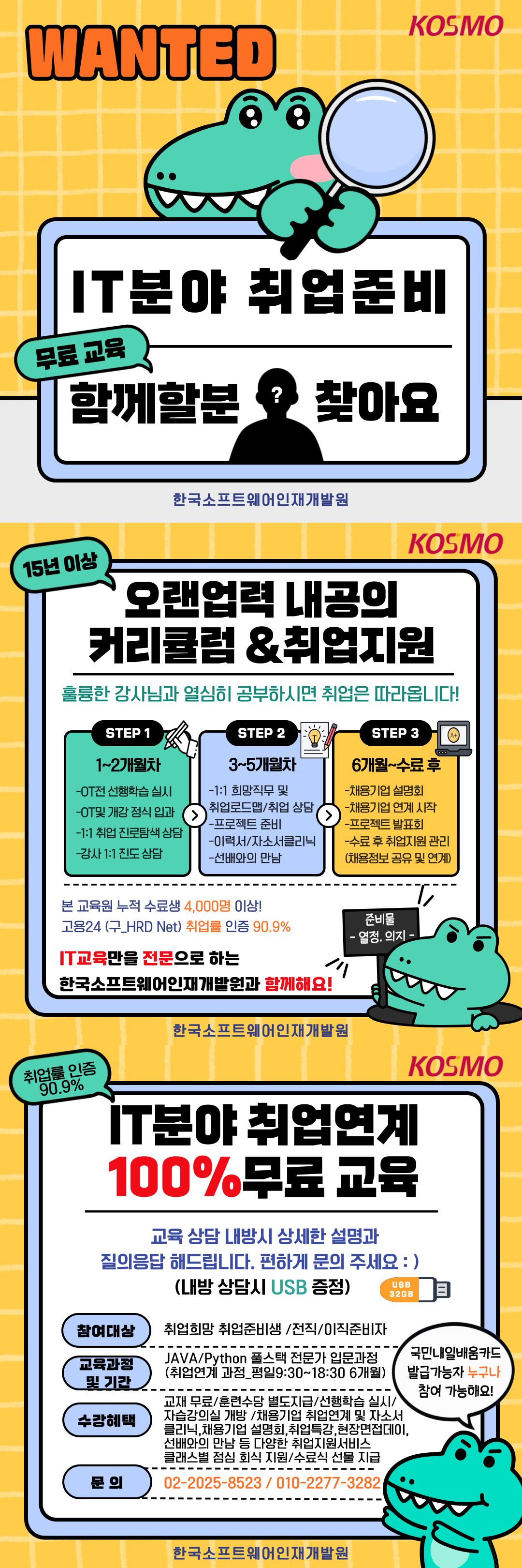 - 홈페이지 : https://www.ikosmo.co.kr (한국소프트웨어인재개발원)