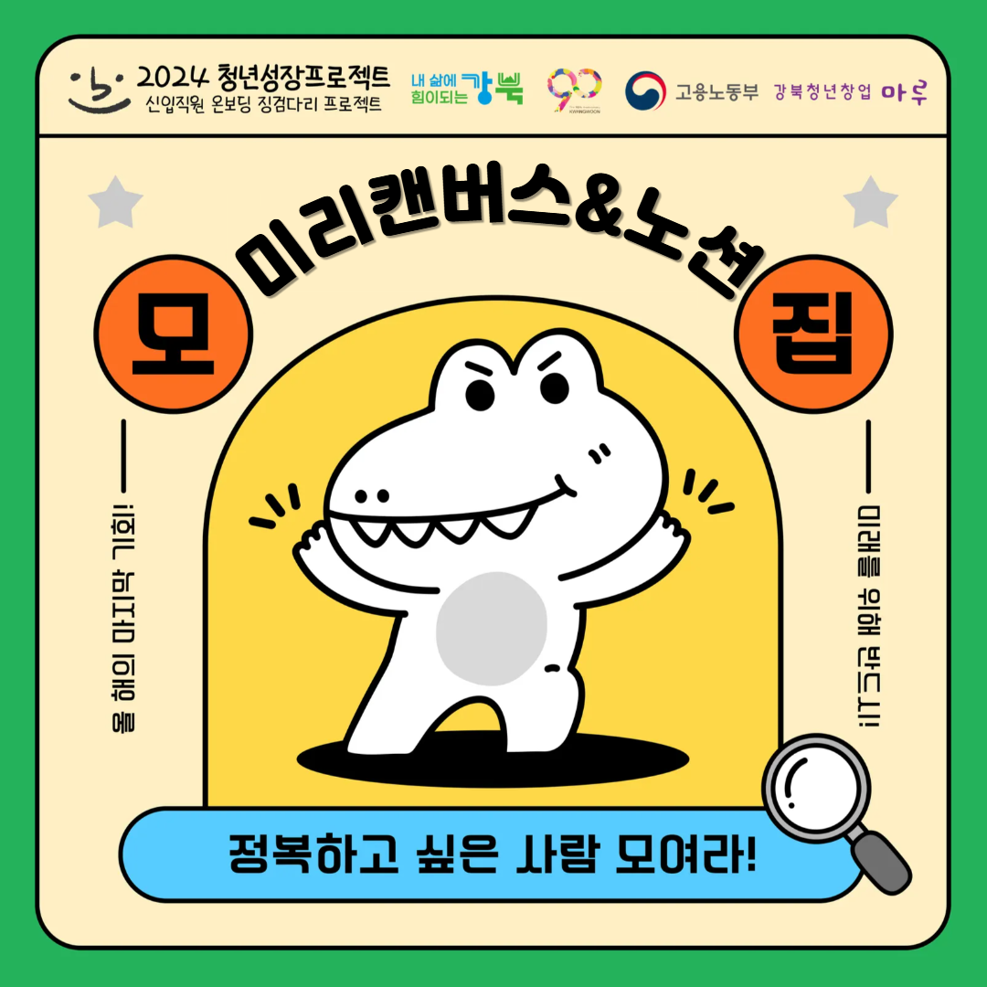 강북창업지원센터는 고용노동부의 '2024 청년성장프로젝트-신입직원 온보딩 교육(징검다리 프로젝트)'을 운영하고 있습니다.
