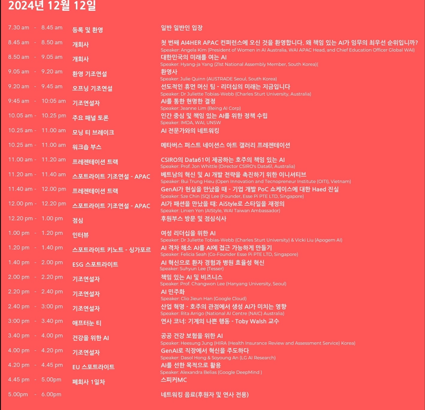 *자세한 컨퍼런스 일정은 홈페이지(AI4HER APAC Conference - Korean)에서 확인 가능