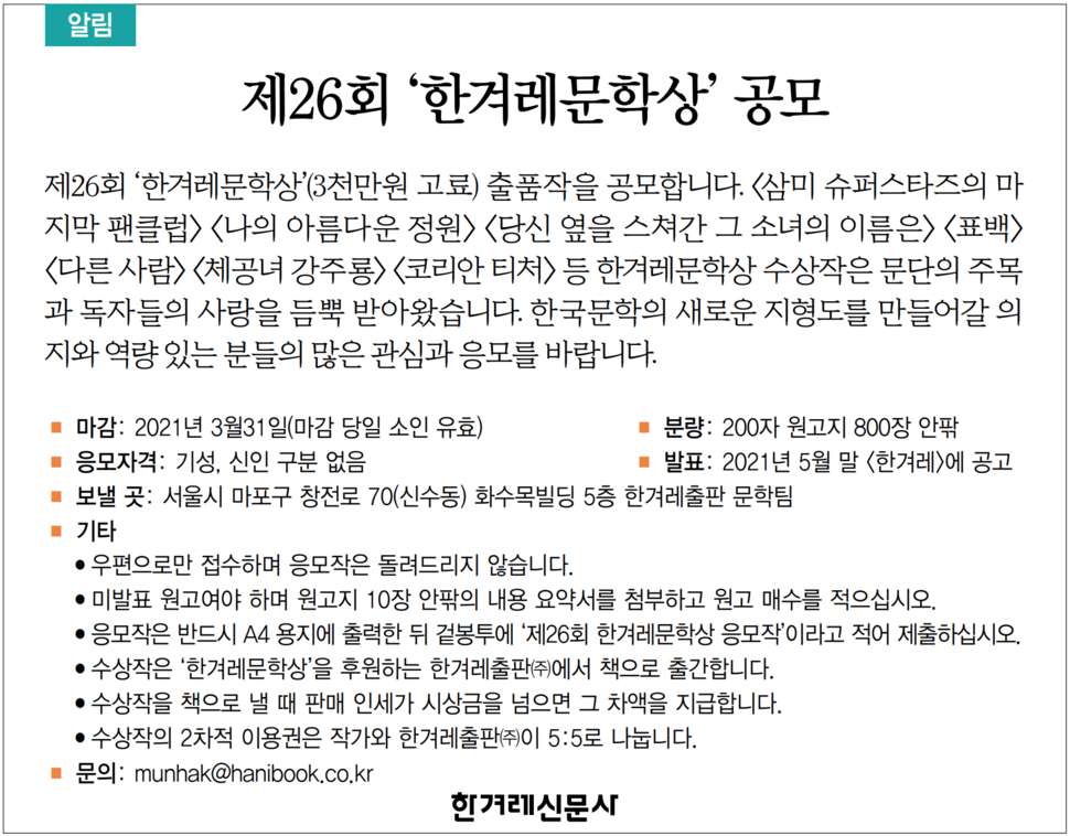 제26회 ‘한겨레문학상’ 공모