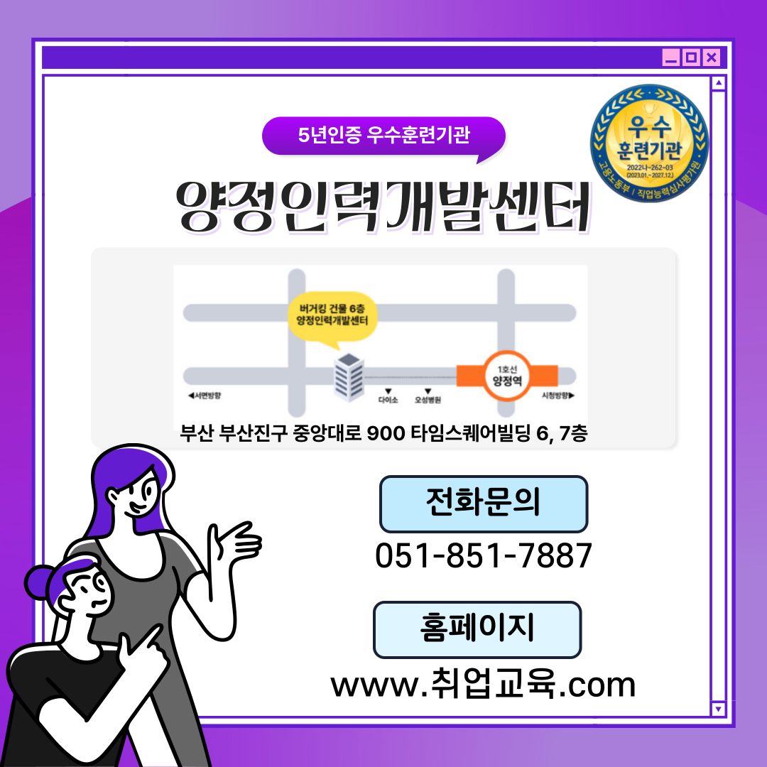 • 교육장소: 부산 양정인력개발센터 (우수 훈련기관)