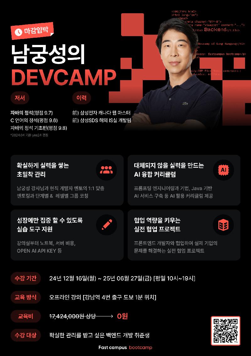 [남궁성의 데브캠프 3기]를 주목하세요📢