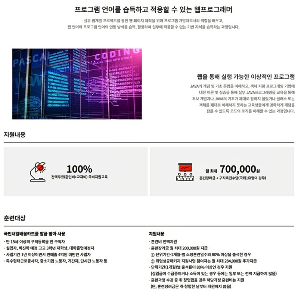 - 웹 프론트엔드, 백엔드 프로그램 언어와 기술 습득을 통한 전문 개발자 양성