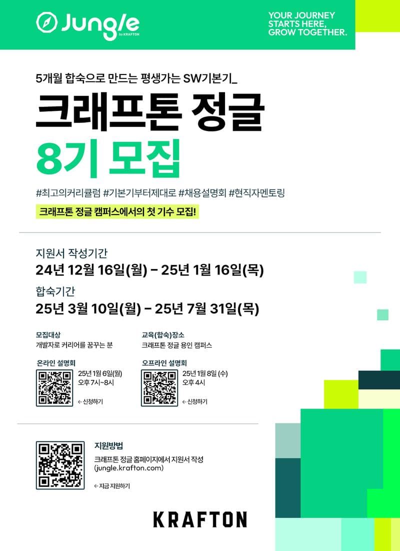 크래프톤 정글에 관심있는 지원자 여러분들을 위한 (온/오프) 입학설명회에 참여해 보세요!