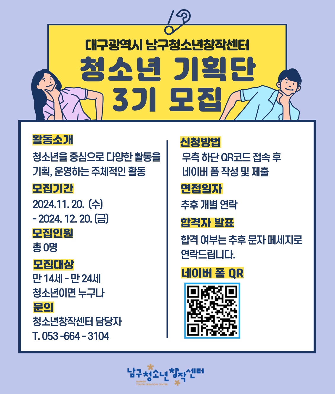 🌟남구청소년창작센터에서 '3기 청소년 기획단'을 모집합니다🌟