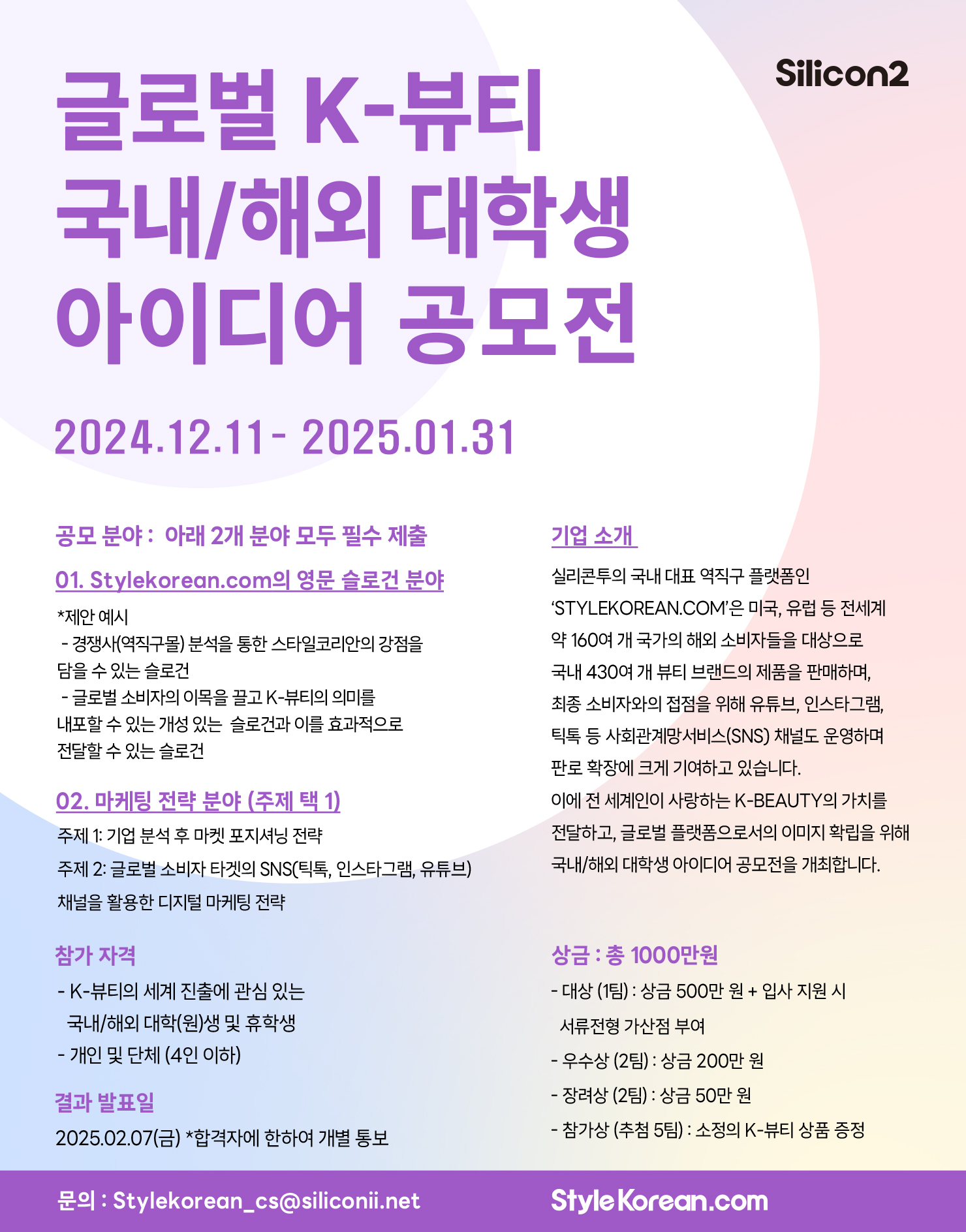 이메일 접수: stylekorean_cs@siliconii.net