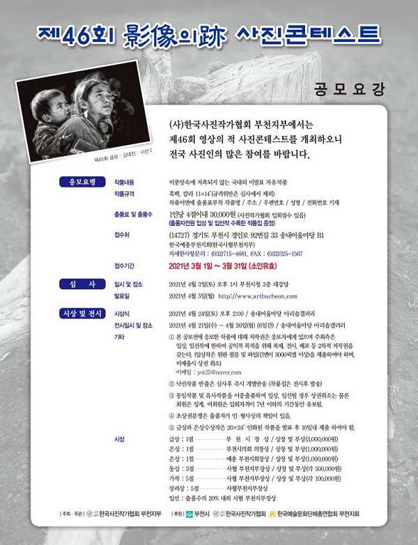 - 동상3점 : 사협 부천지부장상(상장 및 부상 각 500.000원)