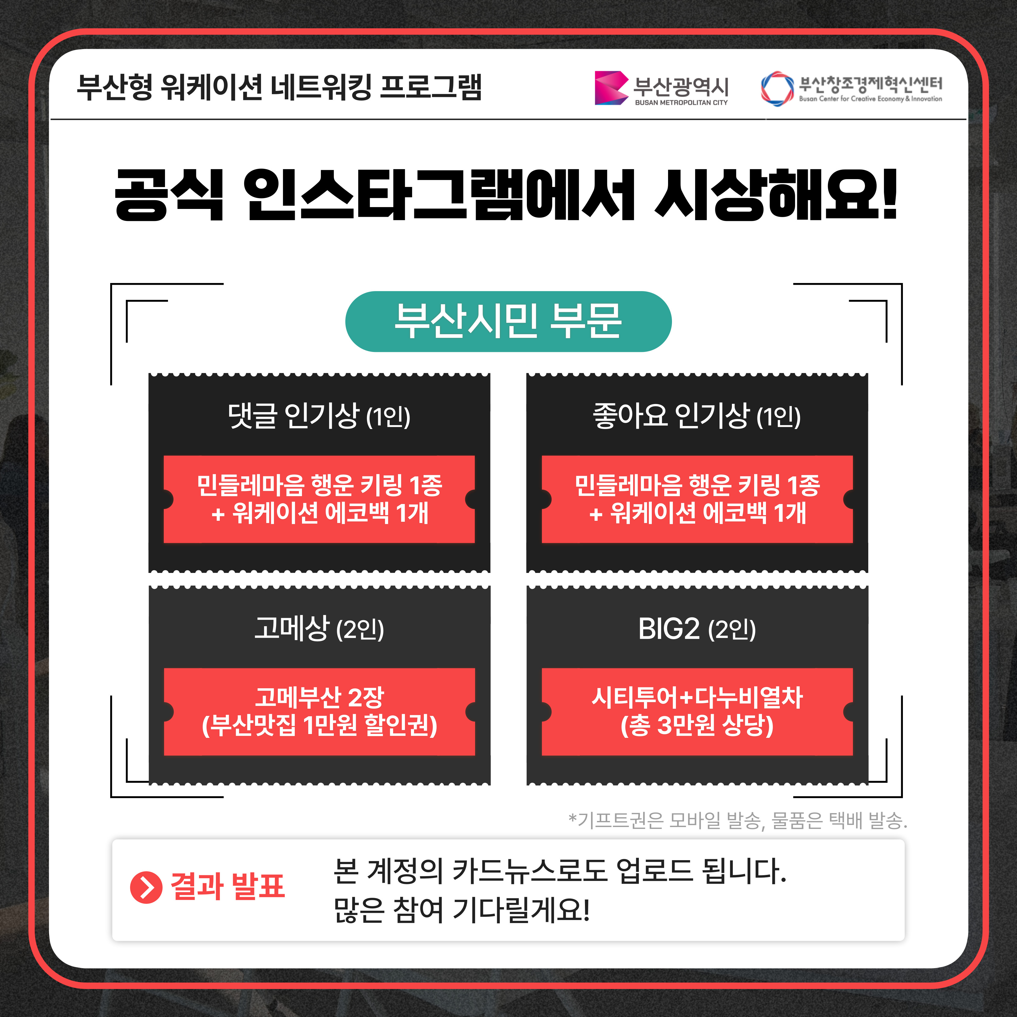 ✔️부산 워케이션 참가자 부문과 부산시민 부문으로 나누어 시상합니다.