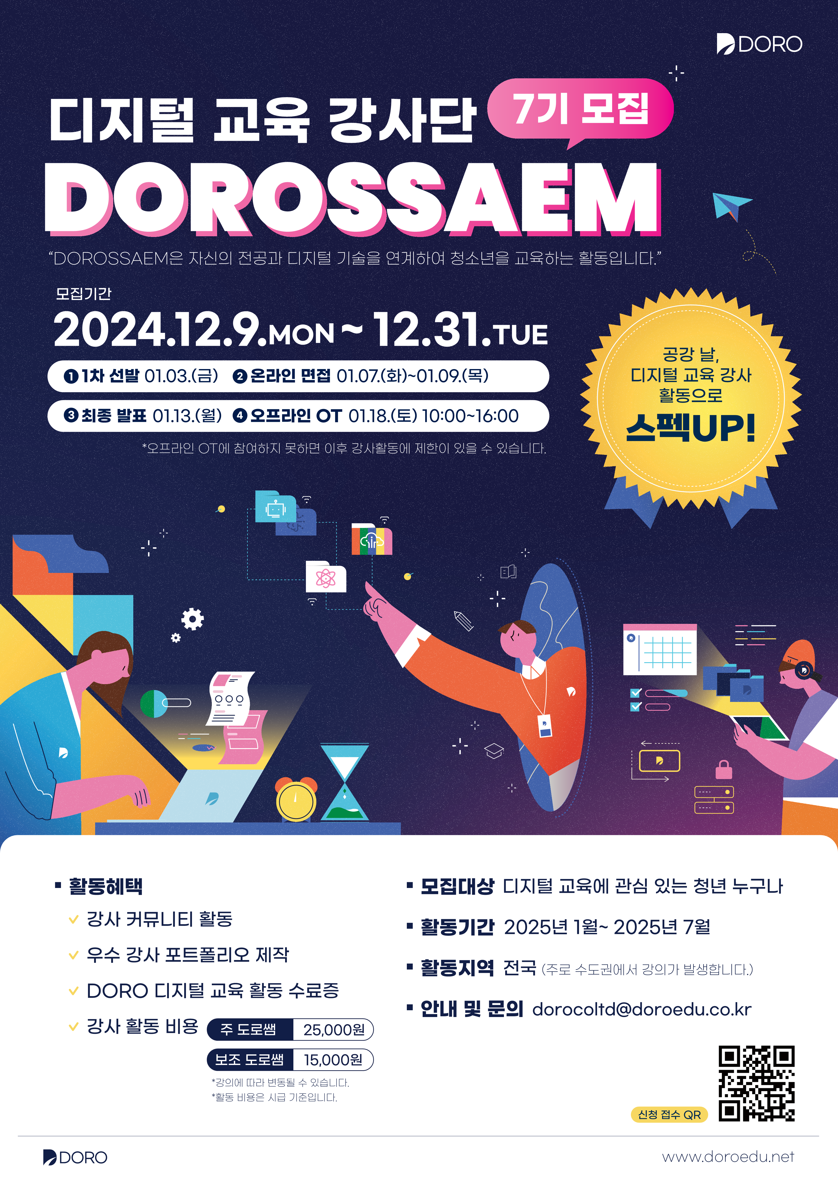 청소년 디지털 교육 DORO 7기 강사단을 모집합니다!