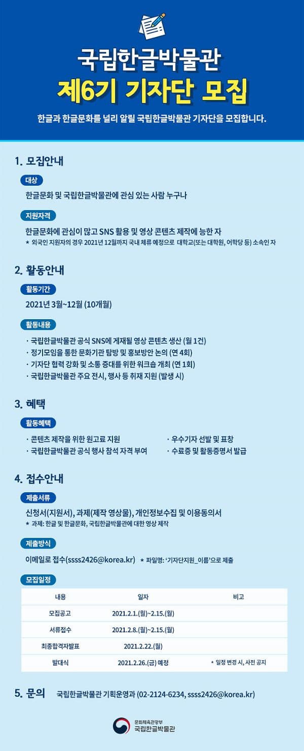 - 국립한글박물관 공식 SNS에 게재될 콘텐츠 생산(월 1건)
