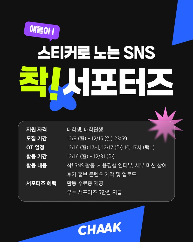 스티커로 노는 SNS, 착! CHAAK의 대학생 서포터즈 3기를 모집합니다.