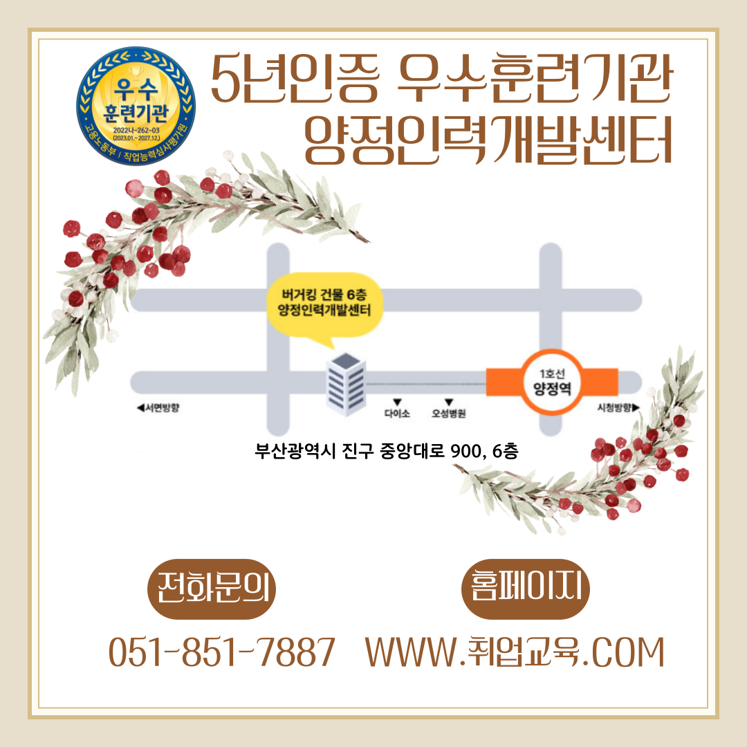 장소: 부산 양정인력개발센터 (우수훈련기관 인증받은 곳!)