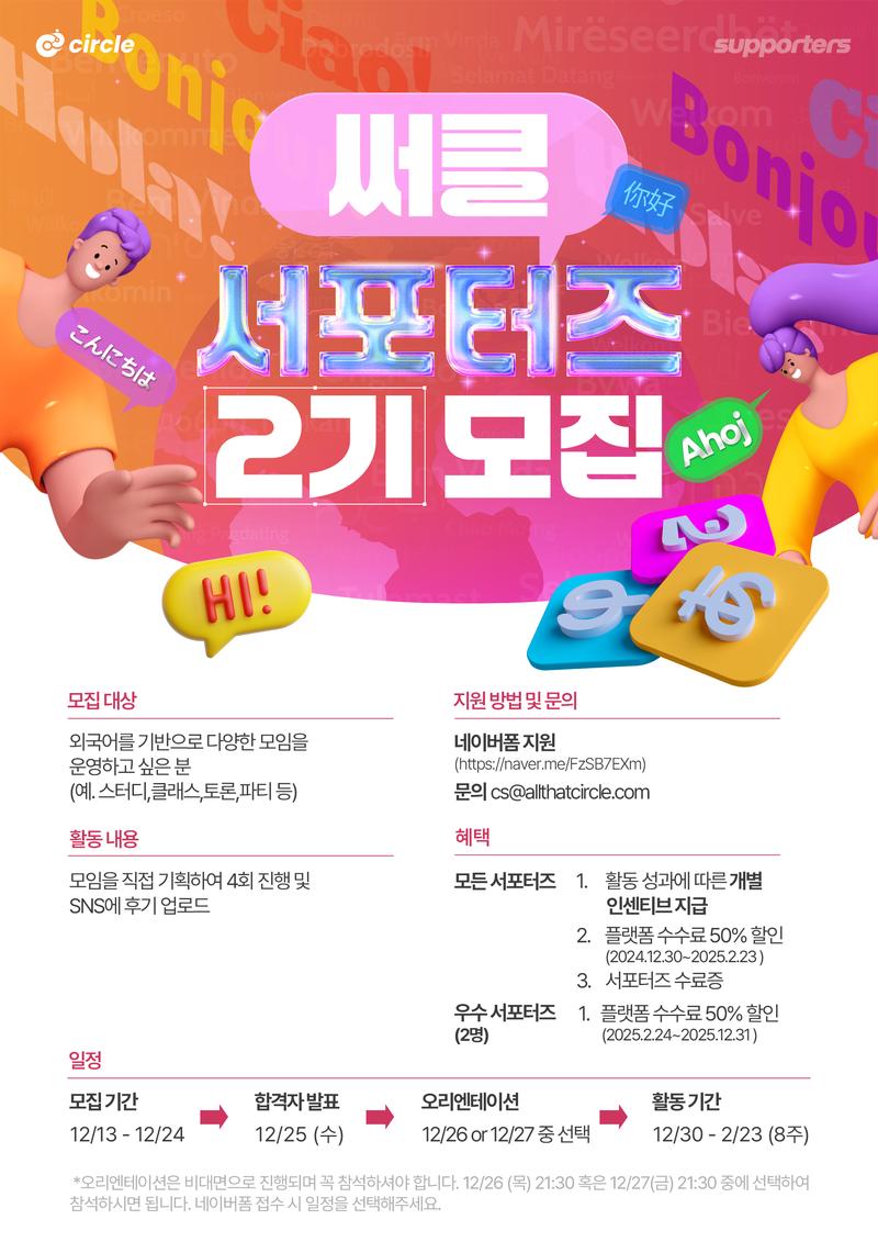 2025 새해에 외국어 기반의 모임을 운영할 써클 서포터즈 2기를 모집합니다.