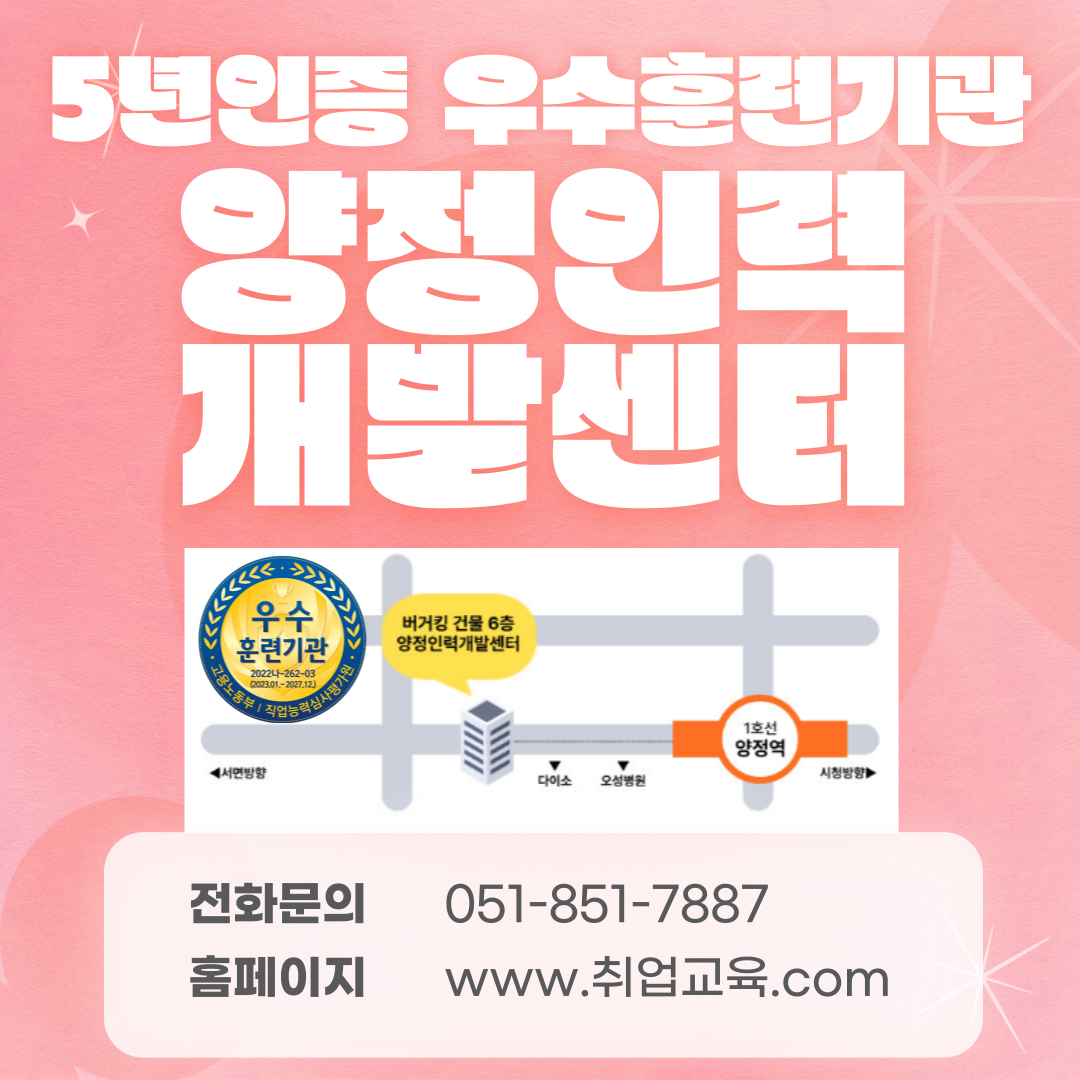 • 교육장소: 부산 양정인력개발센터 (우수 훈련기관)