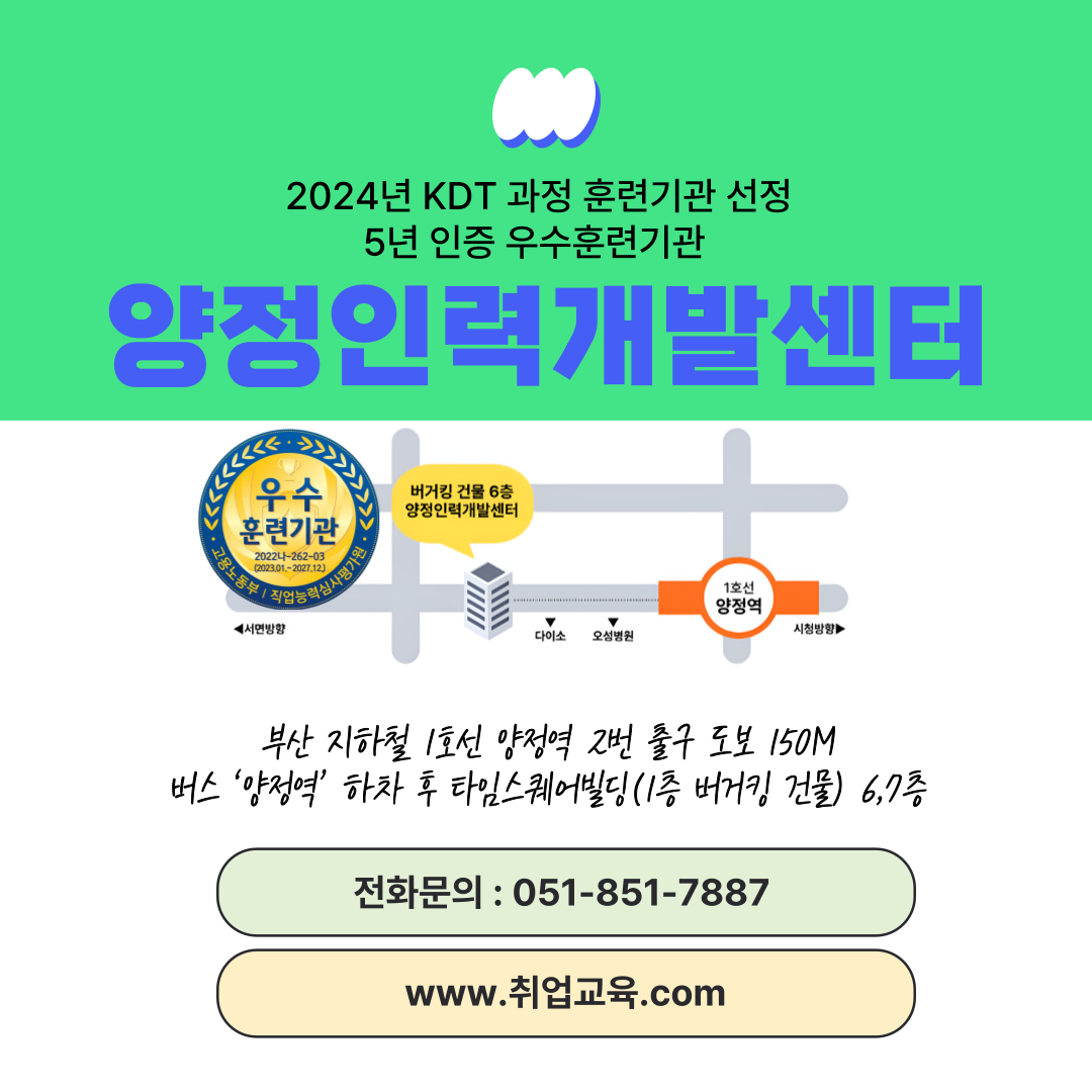 장소: 양정인력개발센터 (부산 양정역 2번 출구 도보 150m)
