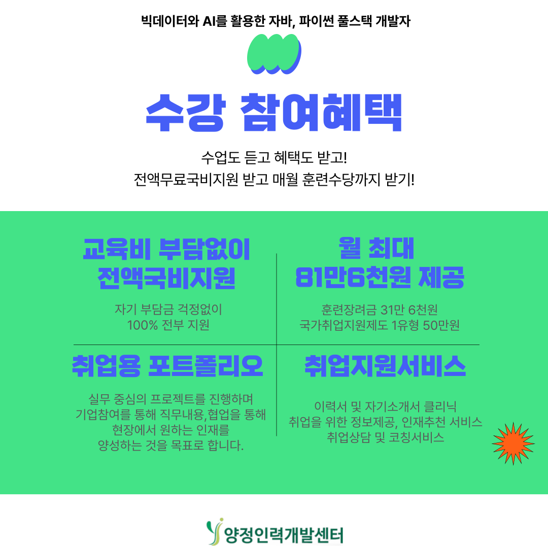 💻 국비 100% 지원 + 훈련장려금 월 최대 816,000원 지급!