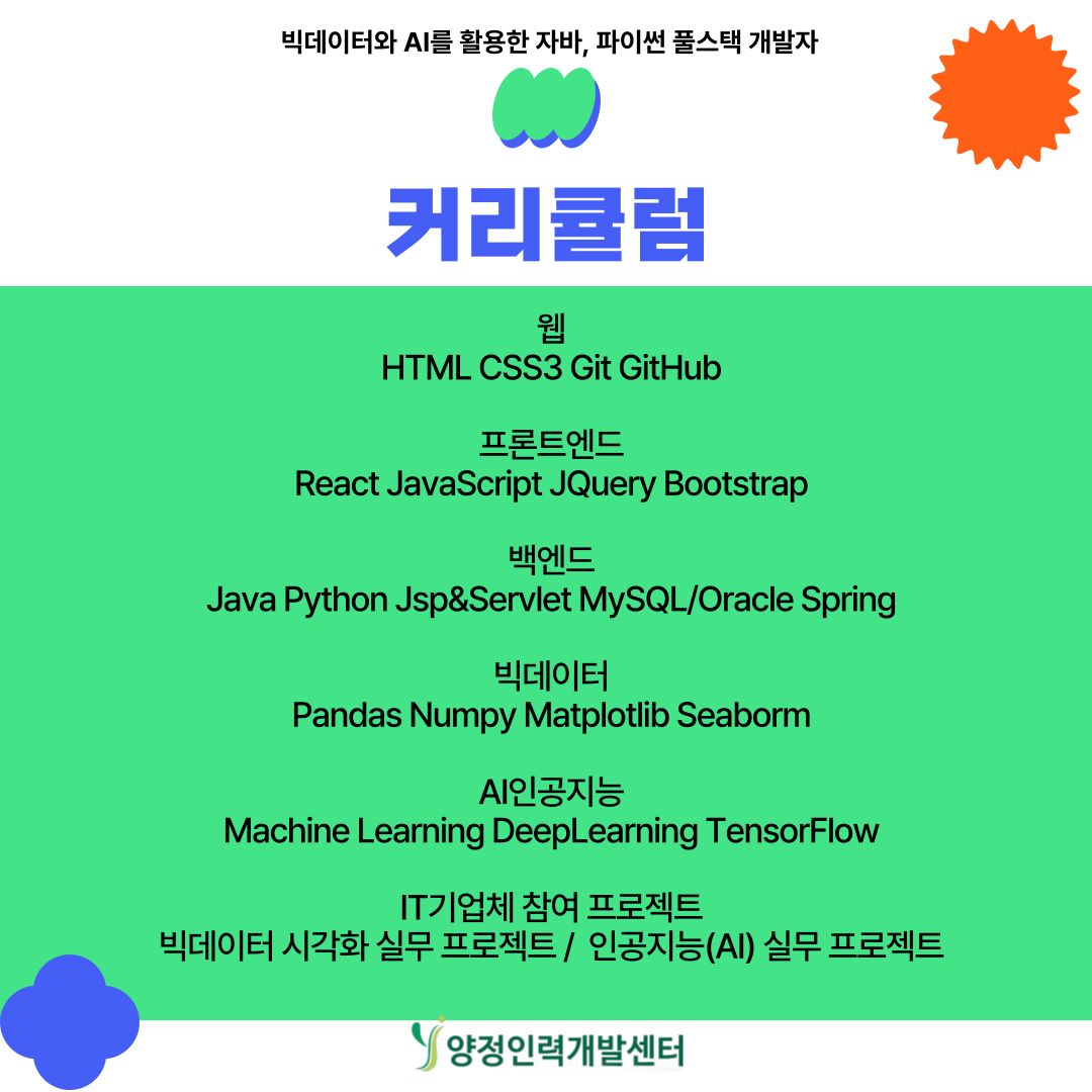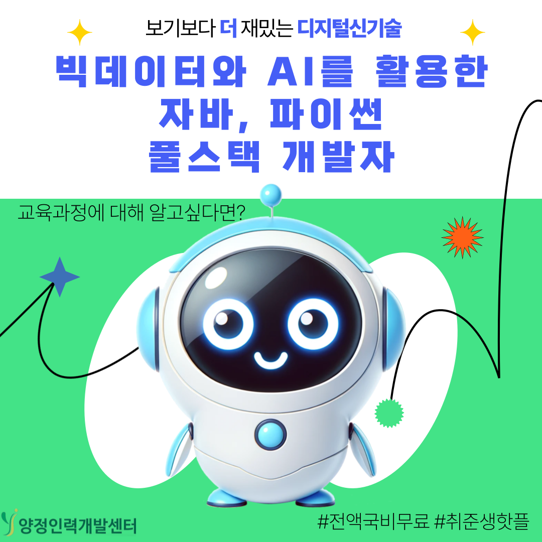빅데이터와 AI를 배우며 취업률 높은 실무형 개발자로 도약하세요.