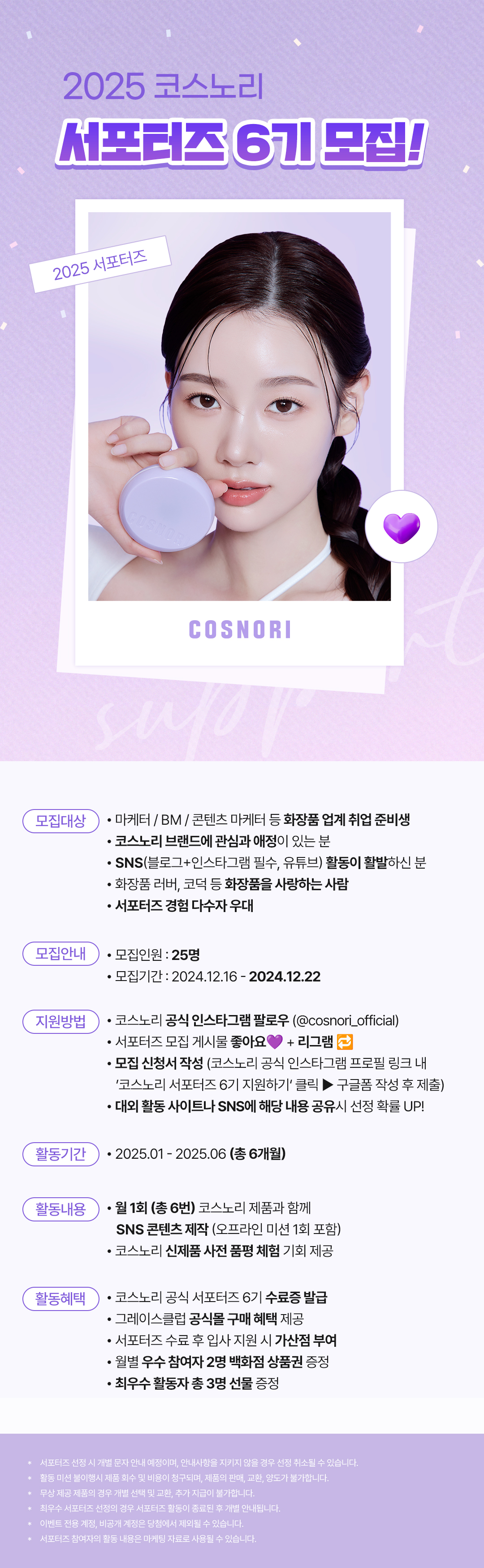월 1회(총 6번) 코스노리 제품과 함께 SNS 콘텐츠 제작(오프라인 미션 1회 포함)