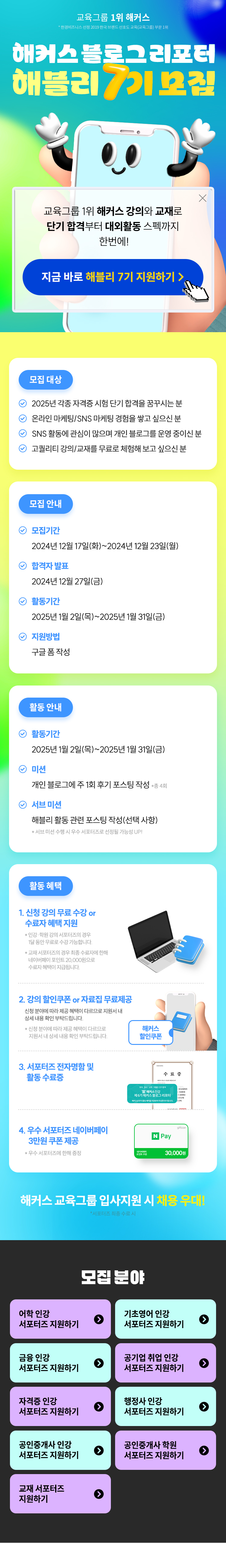 📢 해커스 블로그 리포터 해블리 7기 서포터즈 모집 중!